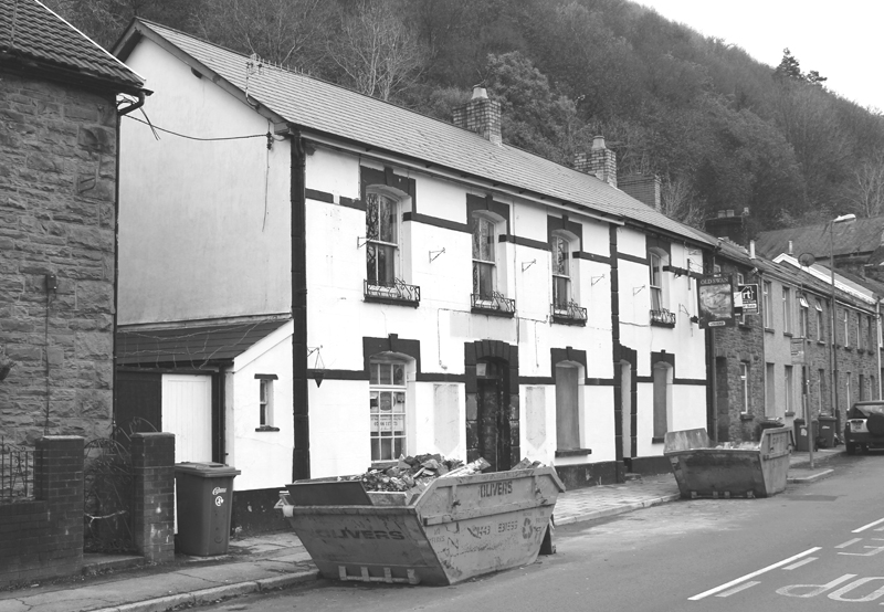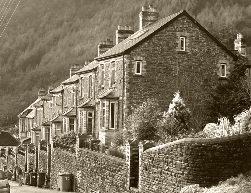 The old Library, the Abercarn UDC Council Offices and the last two rows of the Ranks from the mountain, 1978. ©TBA