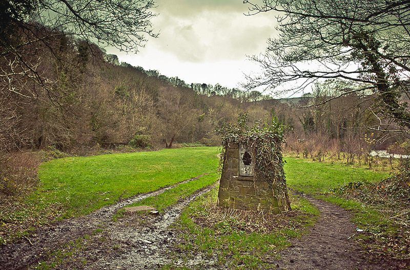 The split entrance to both the Gents and Ladies changing rooms at the old and derelict open-air Abercarn Baths © Dory Buck