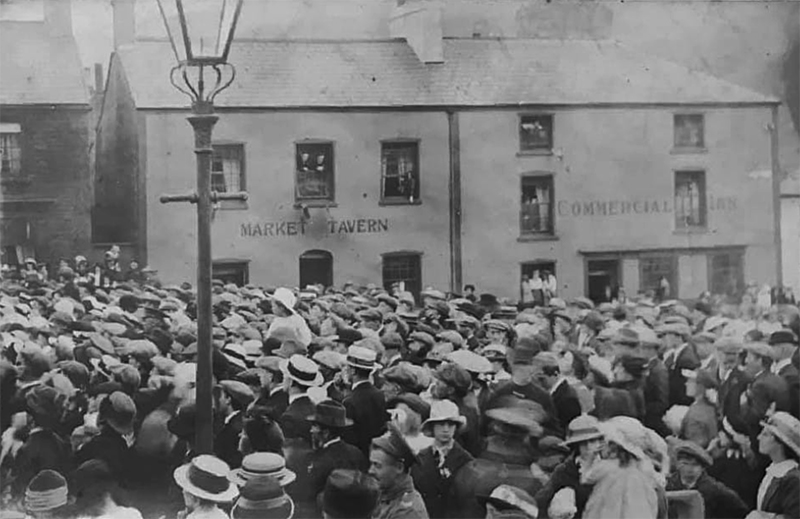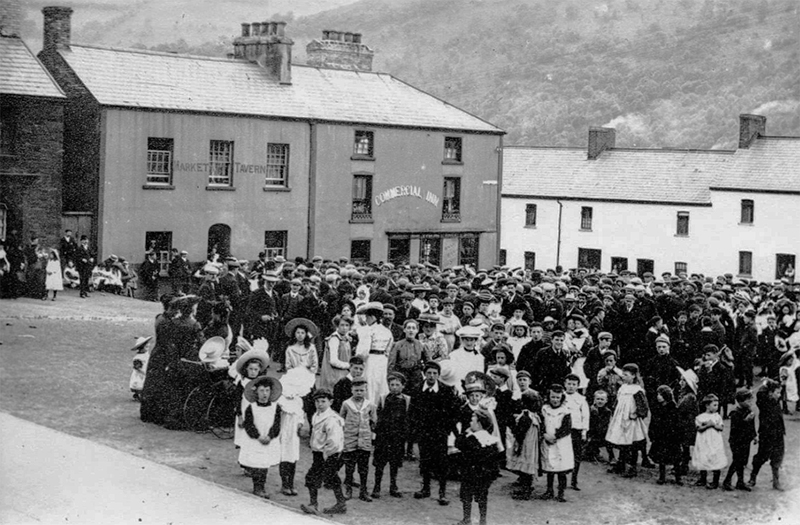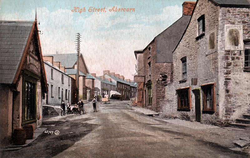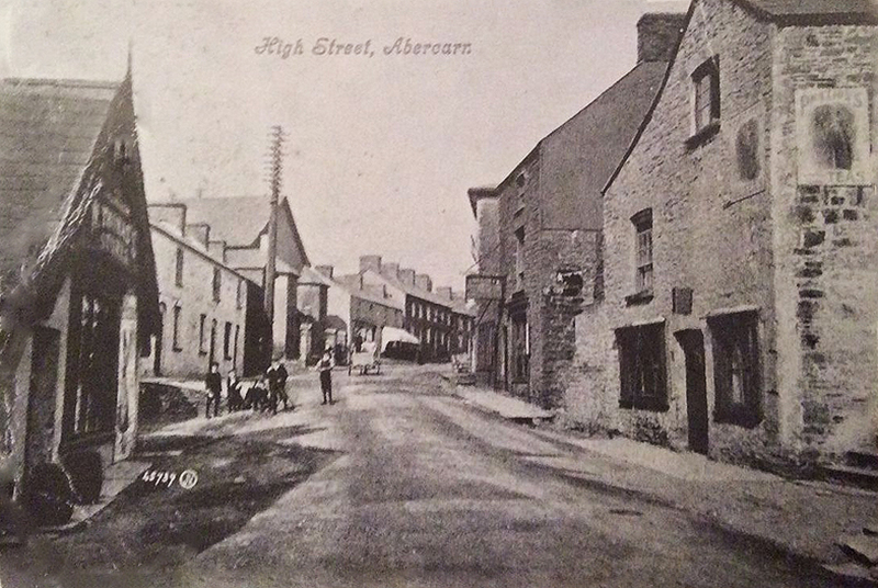 An old photograph of Abercarn High Street. The houses on the right are long-gone. © TBA