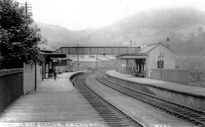 Abercarn Railway Station, looking North towards Newbridge, with Railway Terrace in the background.