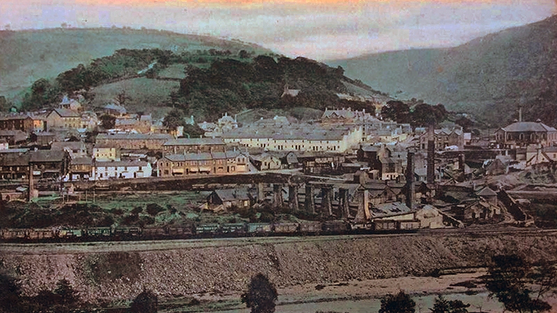 An old print of Abercarn from an elevated position looking down over West End towards the