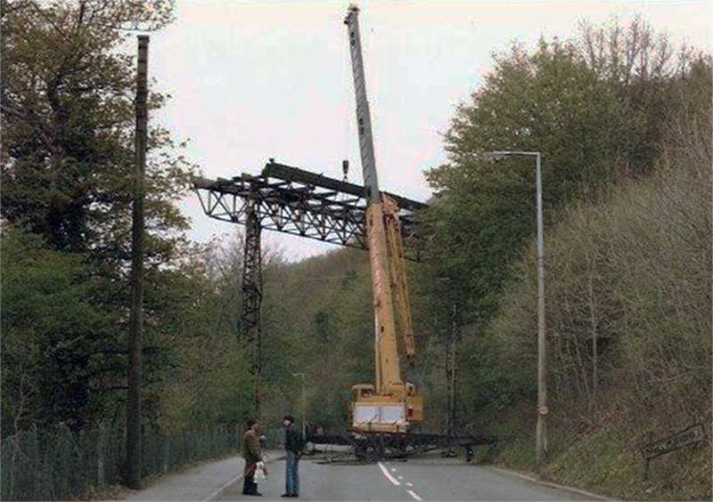 The old railway crossing at the foot of Pantyresk Road - the railway closed in the 1990s, and this was taken late in that decade. The crossing was unmanned and had no barriers, only flashing warning lights, so was, in theory, quite dangerous.