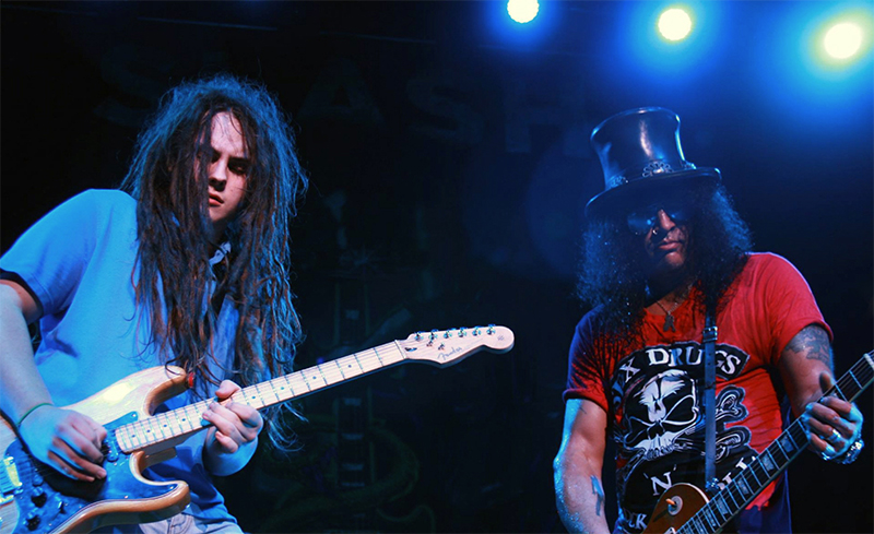 Abercarn guitarist Chris Buck (left), on stage in front of 10,000 people at the Birmingham NIA with Guns N' Roses legend 'Slash' - 9th October 2012