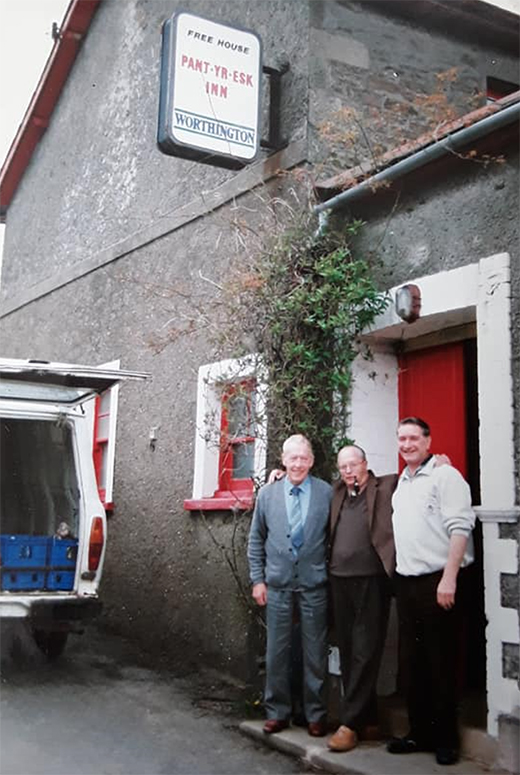 Percy Jennings, John Adams and Bob Baker outside the Pant-yr-Esk Pub © Irene Jennings