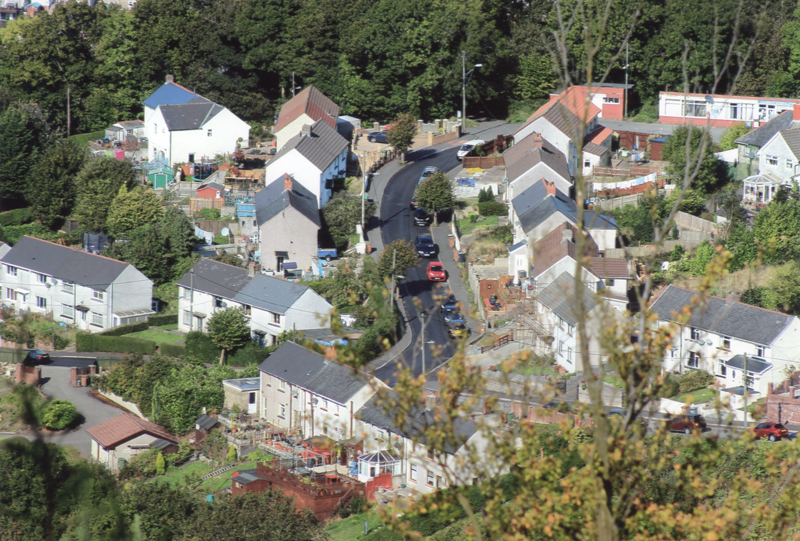 The view over Abercarn and the remaining two rows of the Ranks; photographed around 1978