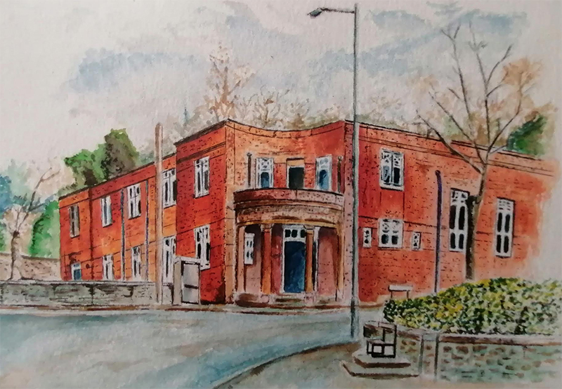 High Meadow House or Abercarn Uchaf (Upper Abercarn), with a suspicious looking postman walking backwards up the drive to deliver parcels in a novel and surreal fashion. He later fell in the canal.