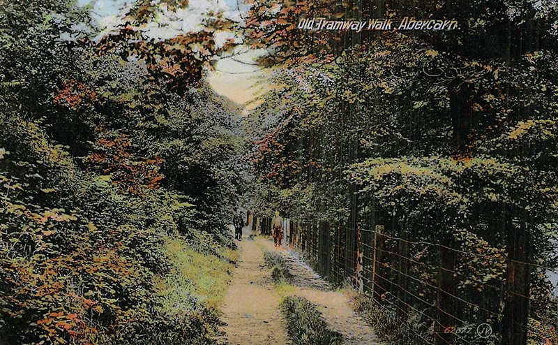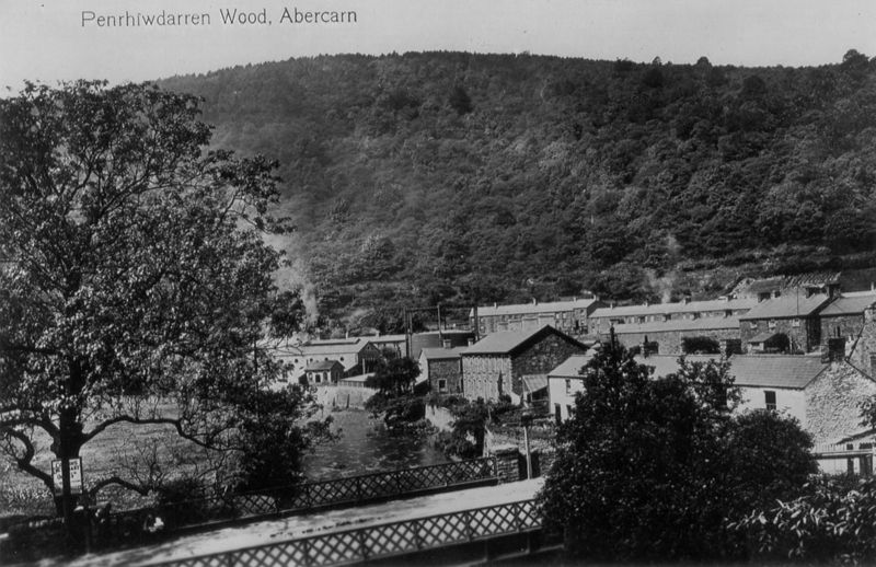 Looking back at Abercarn and the Tin Works from the forestry road above the railway, probably in the 1930's. You can make out Pantyresk, but there's no sign of the coal being tipped on the mountain. © TBA