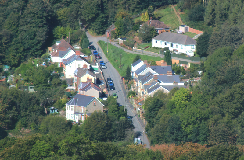 Chapel of Ease, High Meadow and the West End Road running past the old South Celynen site, at this point undeveloped. Trecelyn Viaduct can be seen in the distance.
