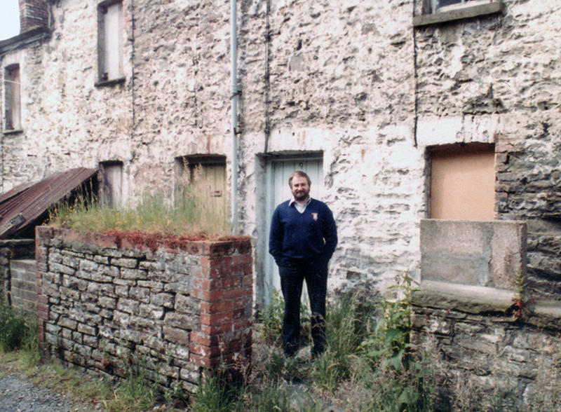 The late Ken Buck, standing outside number 9, the Ranks, shortly before the houses were demolished. Ken was evacuated from London as a baby in 1939, because of the bombing, and was brought up in number 9 by Mr and Mrs Dai Evans; he lived there until he got married in 1955 and moved to Fields Park in Newbridge. Ken was involved in local football for many years, and here is wearing his Newbridge Town FC jumper. He died in October 2018, aged 80.