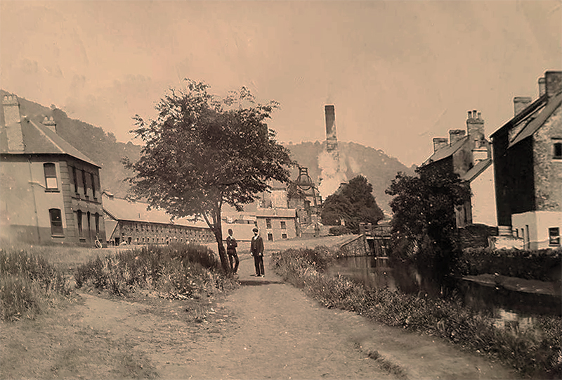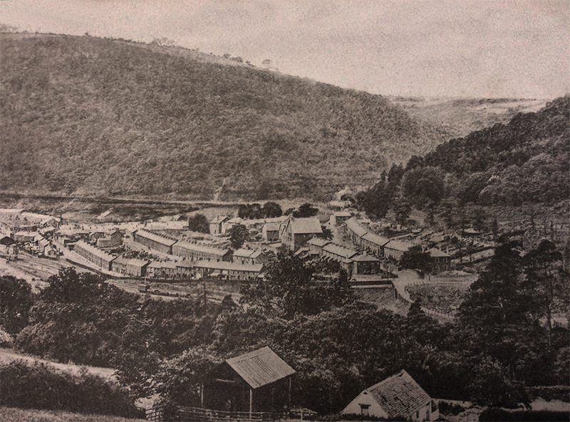 A photograph of West End, with the Brass Foundry to the left and the Tin Works over to the right. West End School can be seen just in front of Cae-Gorlan chapel. © TBA
