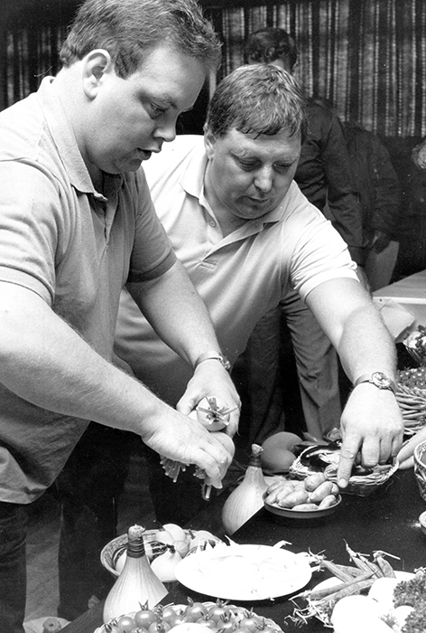 Jeff and Mick - the Davis Boys - display their prize-winning produce; they won the Abercarn Top Club Flower Show 12 years in a row © Jeff and Mick Davis.
