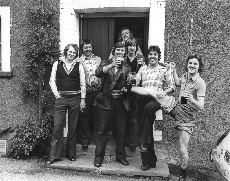 Percy Jennings, John Adams and Bob Baker outside the Pant-yr-Esk Pub © Irene Jennings