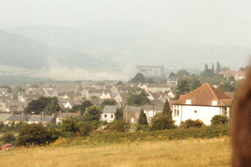 An interesting shot from near Twm Barlwm, showing the position of Rogerstone Power Station and Alcan Works beyond it; both now demolished. Probably taken around 1989. © Kelvin Thorne