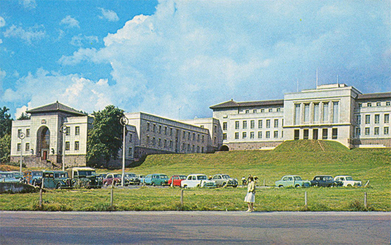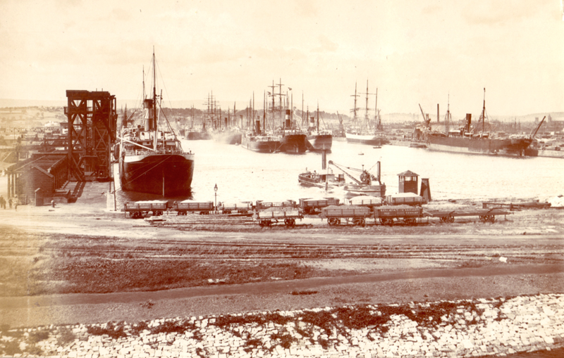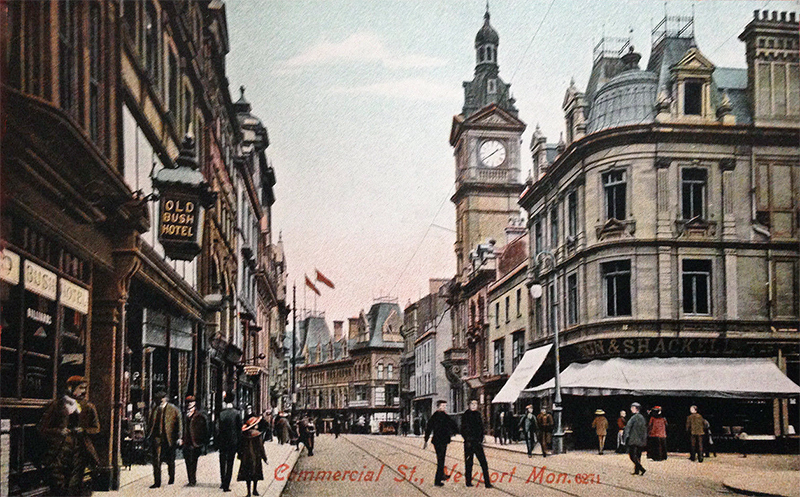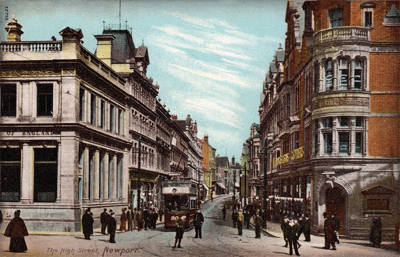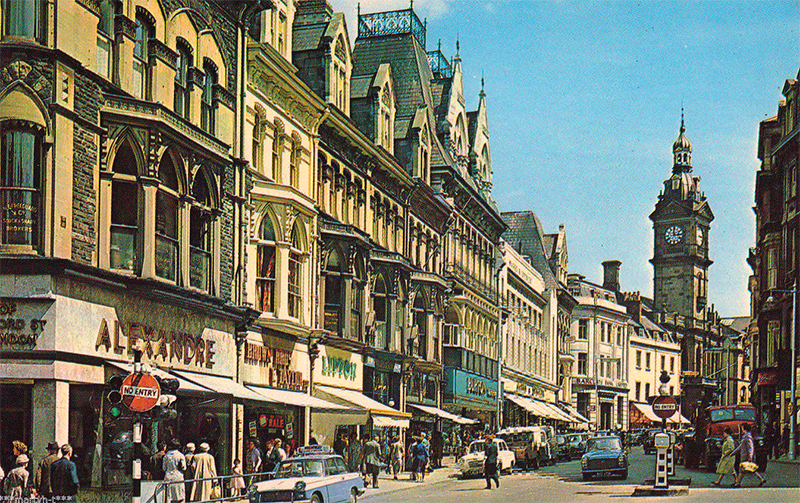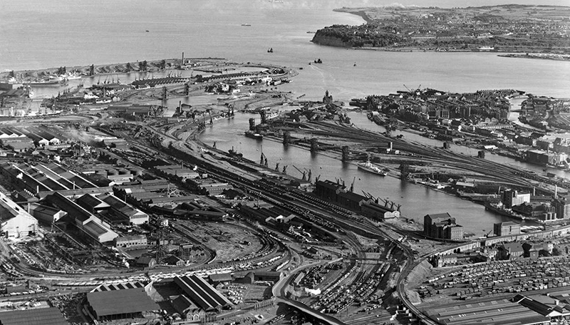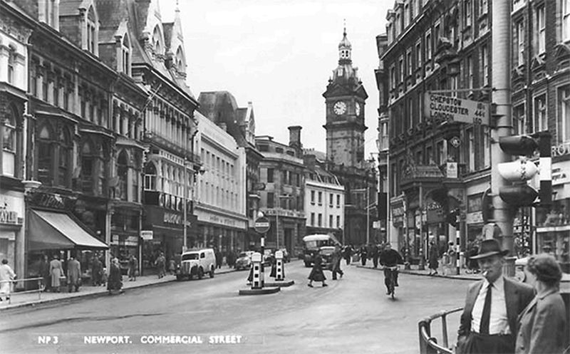 A GWR (Great Western Railway) steam engine moving slowly through Newport Station in 1961
